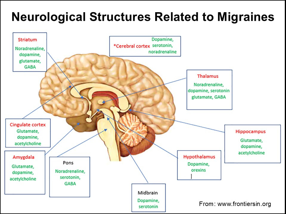 The Typical Neurological, Limbic, and Biochemical Pathways of Migraines