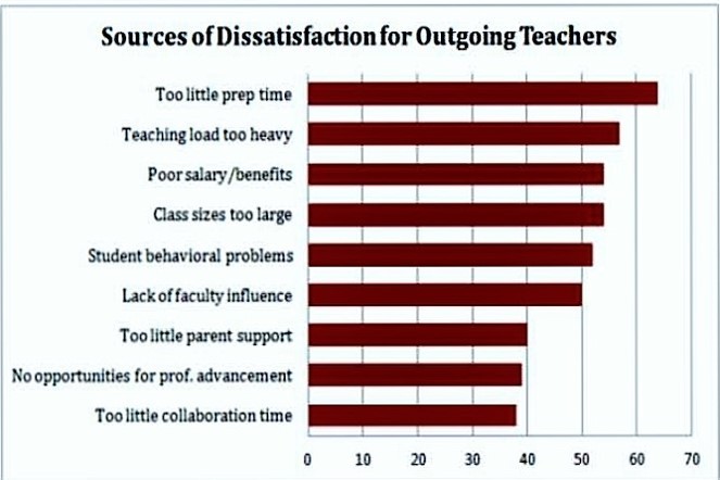 Add to this a Huffington Post article citing the top five reasons for teacher turnover (in reverse order) as: